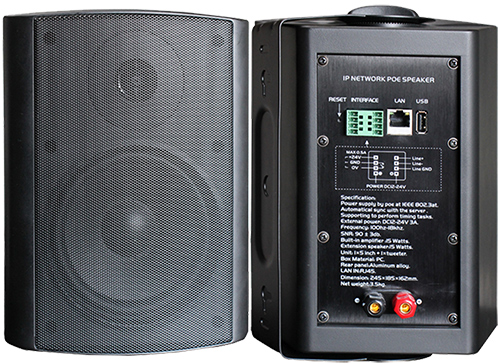 這款網絡音箱除了可以外接12V電源適配器供電,還可以POE(PowerOverEthernet)(IEEE802.3af標準)供電,這樣我們就沒必要再額外拉一根電源線出來,并且減少了安全隱患,而且更加美觀,這樣安裝僅需一根網線連接,施工極其簡單,大大降低了安裝成本。傳輸協議是標準的TCP/IP協議,除此之外,此款音箱還可以支持SIP協議。